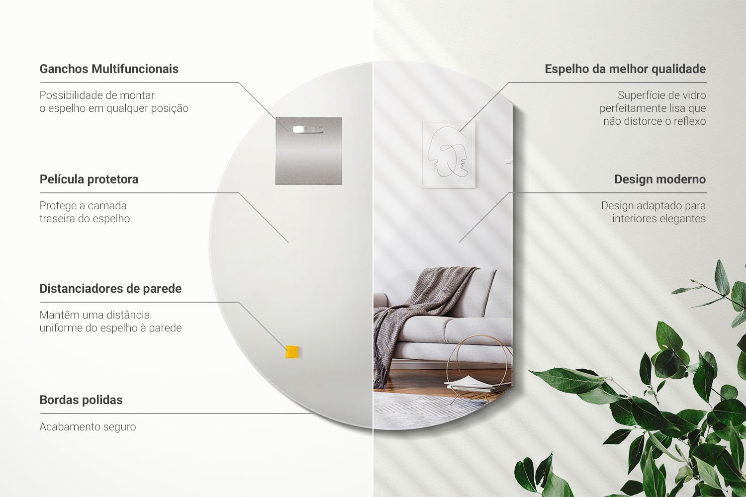 Este não é apenas um espelho para a parede; é um investimento em design. Cada detalhe foi pensado para quem valoriza a originalidade e procura elementos que contem uma história. A sua simplicidade é a sua força, permitindo-lhe ser o protagonista num ambiente minimalista ou complementar harmoniosamente uma decoração mais complexa.